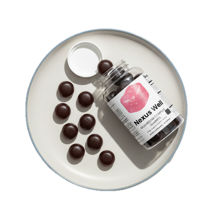 Our Nexus Well Complex Gummies combine the most sought-after mushrooms in the world: Maitake, Shiitake, Lion's Mane, Reishi, Cordyceps, Chaga, Turkey Tail, White Button Mushroom, Black Fungus, and Royal Sun Mushrooms.